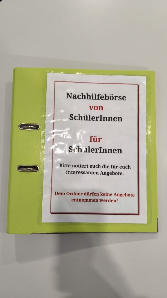 - Schüler/innen, die bereits letztes Jahr Nachhilfe angeboten haben und dies erneut machen wollen, müssen ihr Angebot erneuern, da die Ordner zu Beginn des Schuljahres geleert werden.