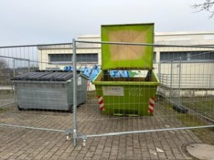 Wenn die Papierboxen voll sind, kommt der Inhalt in die Container, die auf dem Pausenhof stehen. Sobald diese voll sind, wird das Papier abgeholt und zu den großen Recycling-Anlagen gebracht. Dort werden sie sortiert und von Plastik oder Essensresten befreit.
